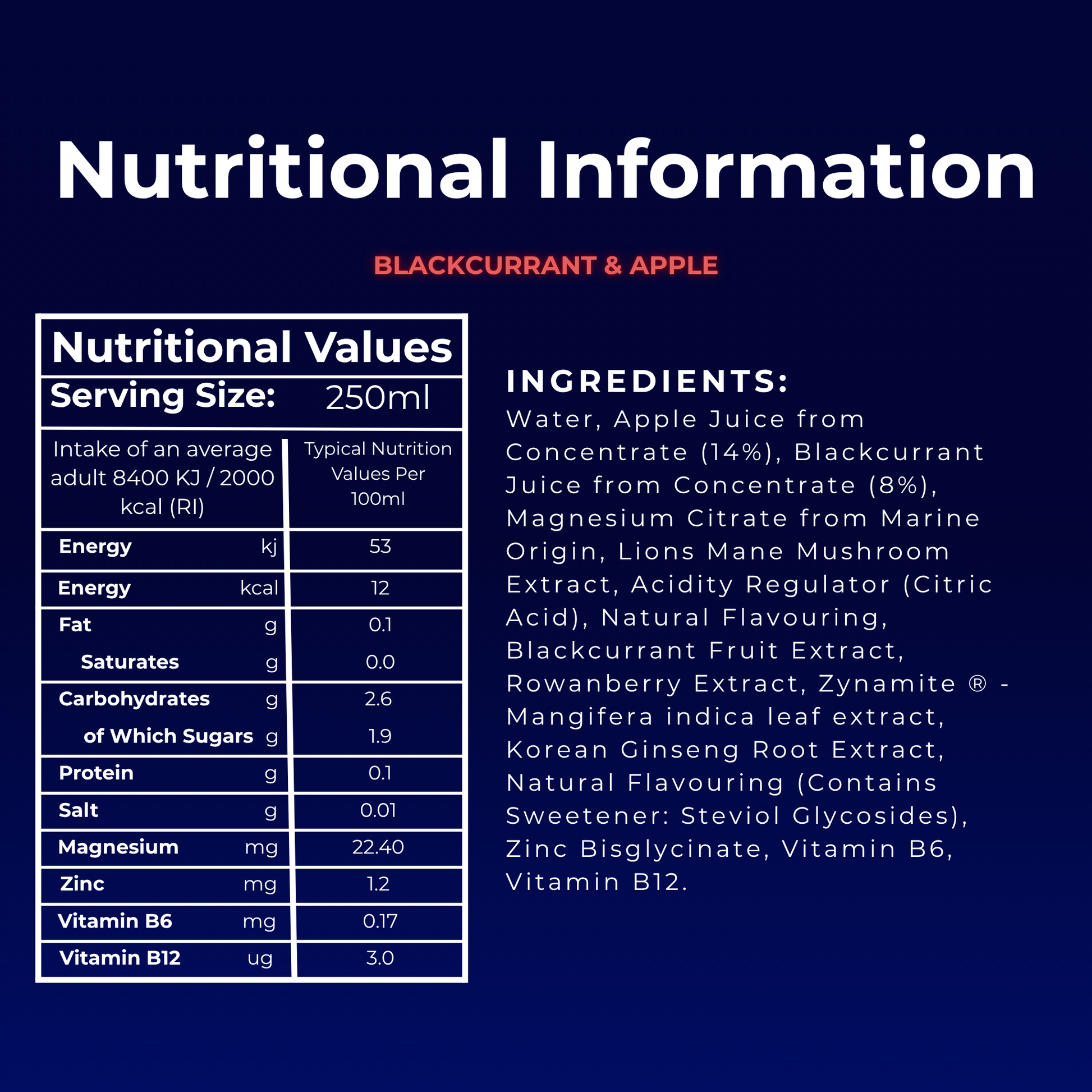 - 🧃 Blackcurrant Extract – boosts brain blood flow and stamina